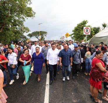 Durante este evento, El Gobernador Javier May Rodríguez, entrega el nuevo puente El Naranjeño II como parte de una jornada integral de obras y beneficios sociales. Acompañado por la secretaria de Desarrollo Agropecuario y Pesca, Luisa del Carmen Cámara Cabrales, y del subsecretario de Pesca y Acuacultura, Guillermo Priego León, el mandatario estatal destacó que esta iniciativa tiene varias virtudes, entre ellas generar empleos e impulsar comunidades sustentables, para que los productores no tengan que emigrar de su comunidad.