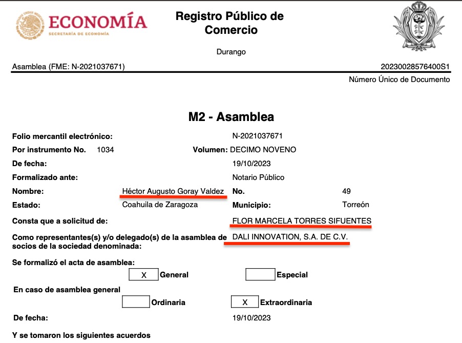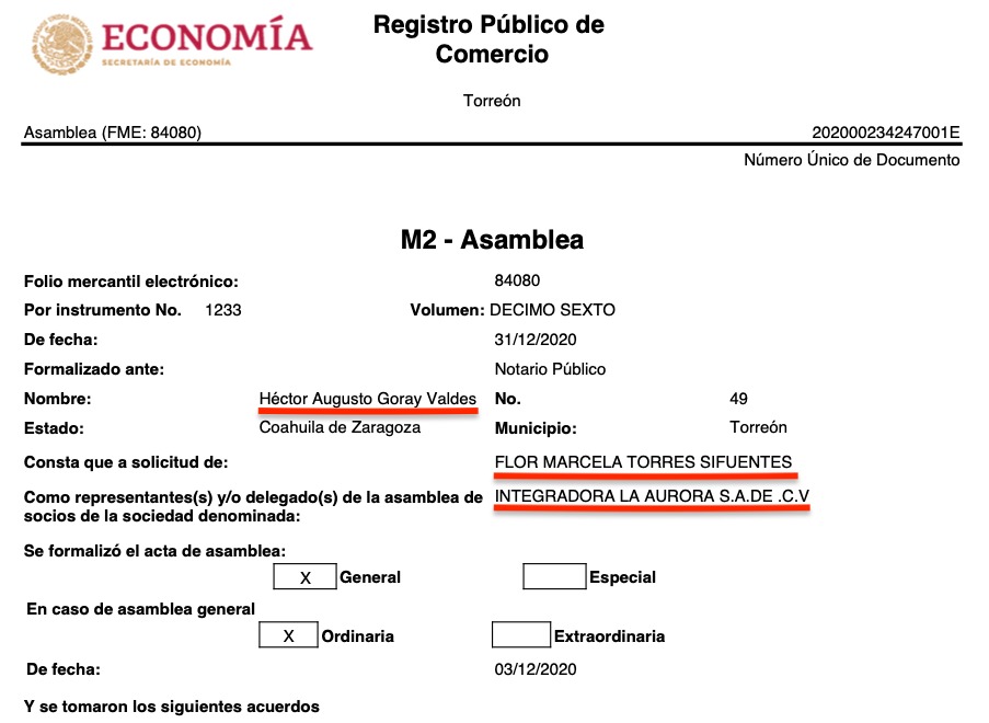 Lo curiosos es que las 16 razones sociales tienen a representantes o apoderados legales en común, todas consignadas ante la fe del Notario Público No. 49,  Héctor Augusto Goray Valdés, de Torreón, Coahuila, e igualmente todas a solicitud de Flor Marcela Torres Sifuentes, según consta en los registros públicos de comercio de las citadas empresas, que se ubican en diversas partes del país como Torreón, Coahuila, Durango, Estado de México y Jalisco.