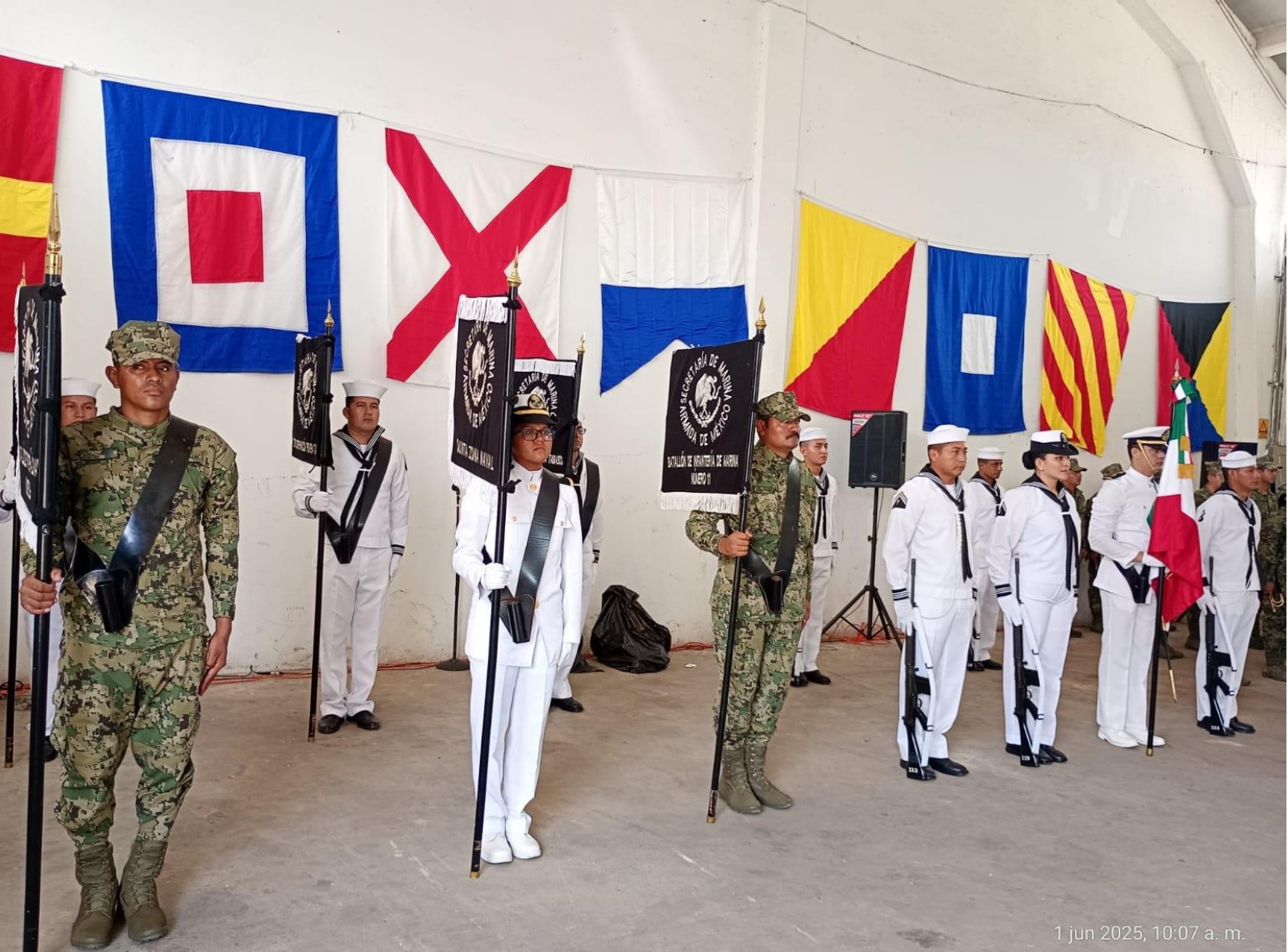 El Vicealmirante José Méndez Vázquez, Comandante de la Quinta Zona Naval, recordó que el primero de junio de 1917, el artículo 32 de la recién promulgada Constitución Política de los Estados Unidos Mexicanos se hizo realidad cuando se embarcó la primera tripulación compuesta cien por ciento por mexicanos en el vapor “Tabasco”.