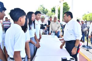 •* No hay mejor herencia que el estudio, resalta el mandatario al recalcar el sistema de becas que se implementa para que no haya desarraigo en la comunidad y entregar obra educativa durante su gira por Balancán