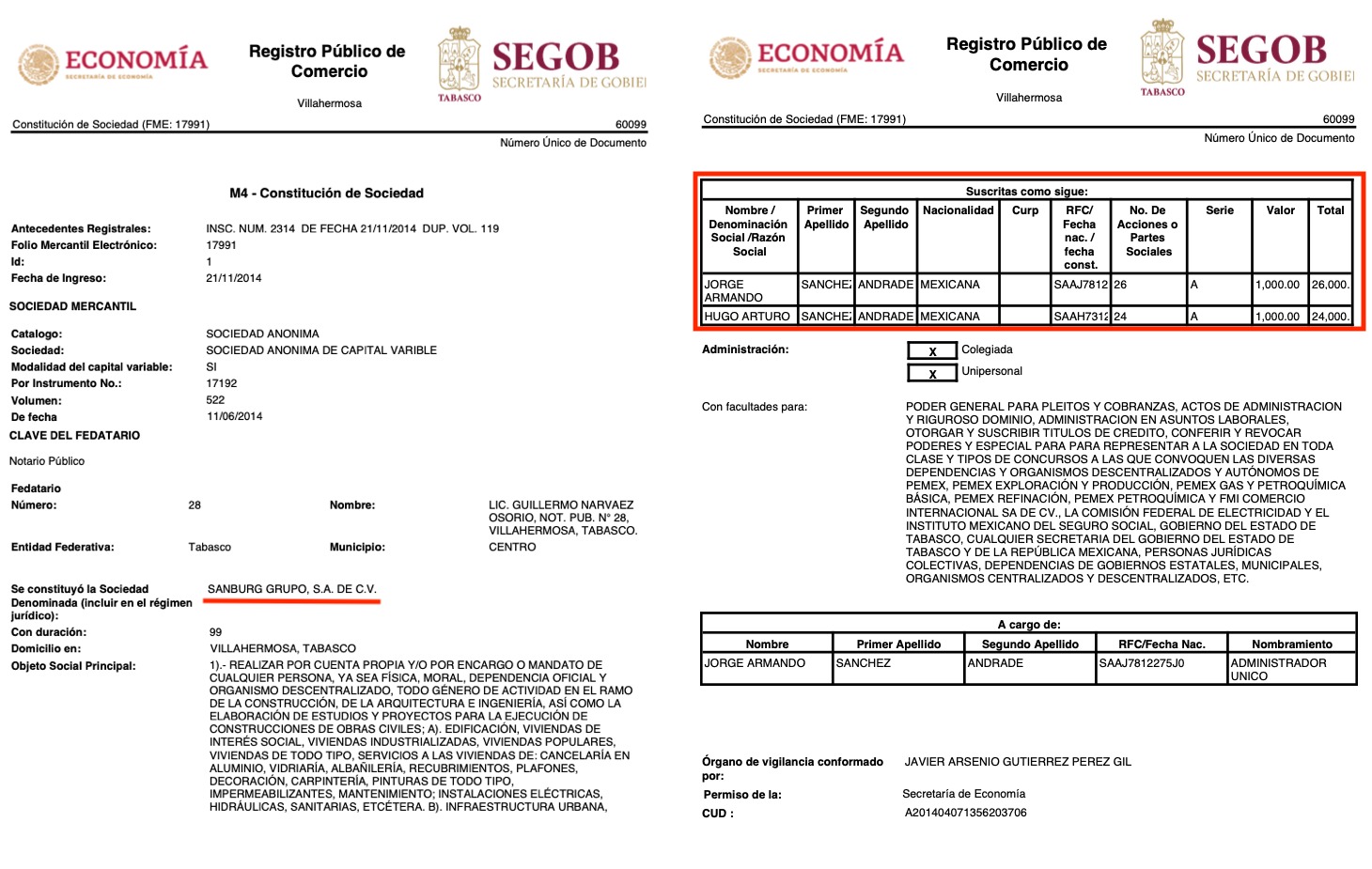 Y no solo eso, en noviembre de 2020 los dos socios Jorge Armando y Hugo Arturo Sánchez Andrade previendo los buenos negocios que se venían, decidieron incrementar el capital variable de la empresas hasta por 1,000,000 pesos.