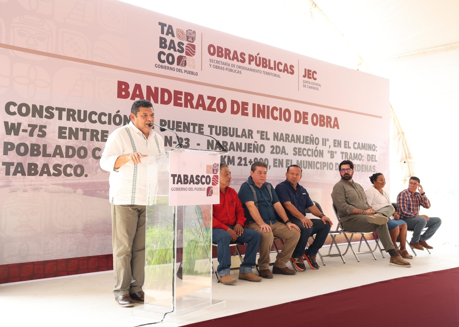 El mandatario estatal Javier May Rodríguez puso en marcha la construcción del puente tubular que comunica a las familias del poblado C-11 con la comunidad de El Naranjeño, en el municipio de Cárdenas; en la obra se invierten más de 48 millones de pesos y tendrá con una vida útil de 100 años.