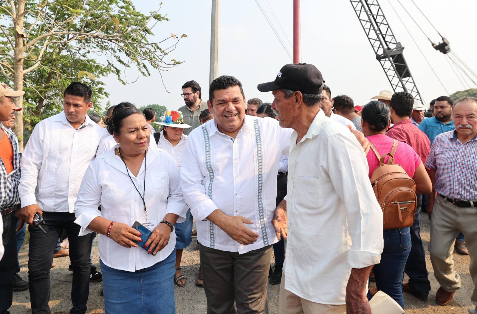 Acompañado por el alcalde de Cárdenas, Euclides Alejandro Alejandro y del secretario de Ordenamiento Territorial y Obras Públicas, Daniel Casasús Ruz, el mandatario estatal resaltó que, con estas acciones de infraestructura, se restablece la comunicación en toda la región y se atiende una gran necesidad de los habitantes de la zona, quienes tienen que utilizar una panga o cayuco, para cruzar el río y trasladarse a sus trabajos, escuelas y realizar sus actividades cotidianas.