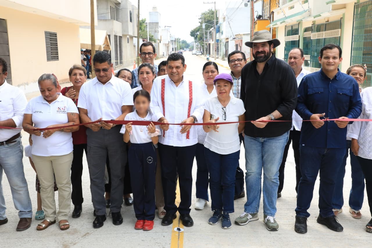 El mandatario Javier May Rodríguez entregó las calles Guayacán y Capulín en el fraccionamiento Brisas del Carrizal, perteneciente al municipio de Nacajuca, realizadas a base de concreto hidráulico con una inversión superior a los 22 millones 278 mil pesos.