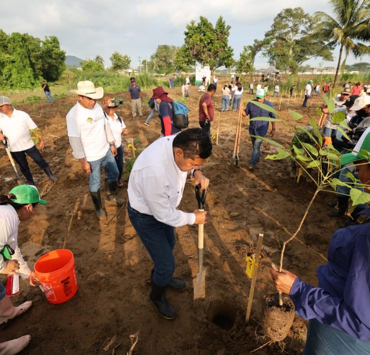 En el polígono de la Piscifactoría, en Teapa, más de mil personas se sumaron a la iniciativa, encabezada por el gobernador Javier May Rodríguez, y apoyada por las secretarías de Gobierno y de Desarrollo Agropecuario y Pesca. Con palas, coas, botas y guantes, servidores públicos y familias enteras trabajaron desde tempranas horas para plantar árboles frutales y maderables.