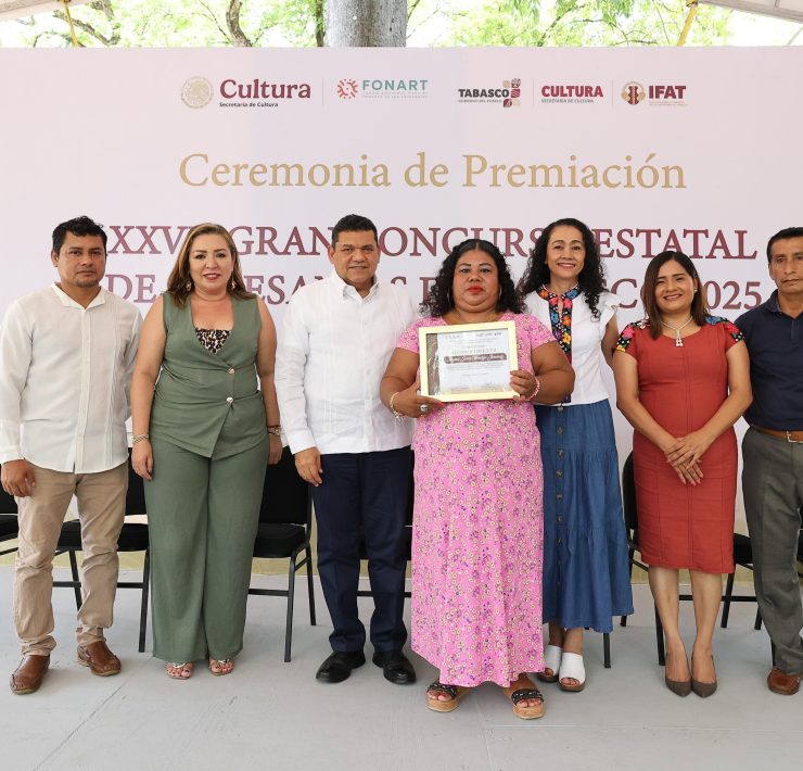 También galardonó al artesano Tomás Pérez Hernández, oriundo del poblado Tucta, Nacajuca, experto en el manejo de la palma, con el premio al “Maestro Artesano Sostenible”; mientras que, José Jesús Sánchez Ramos, vecino de la colonia La Manga, en Centro, con 26 años de edad y dedicado a la rama de la cartonería y el papel, recibió la estatuilla por “Joven Artesano Aprendiz”.